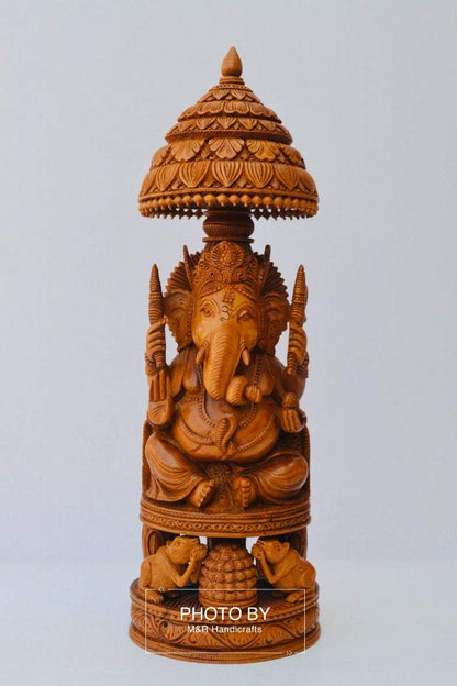 Sandalwood Beautifully Hand Carved Ganesha Chatri or umbrella