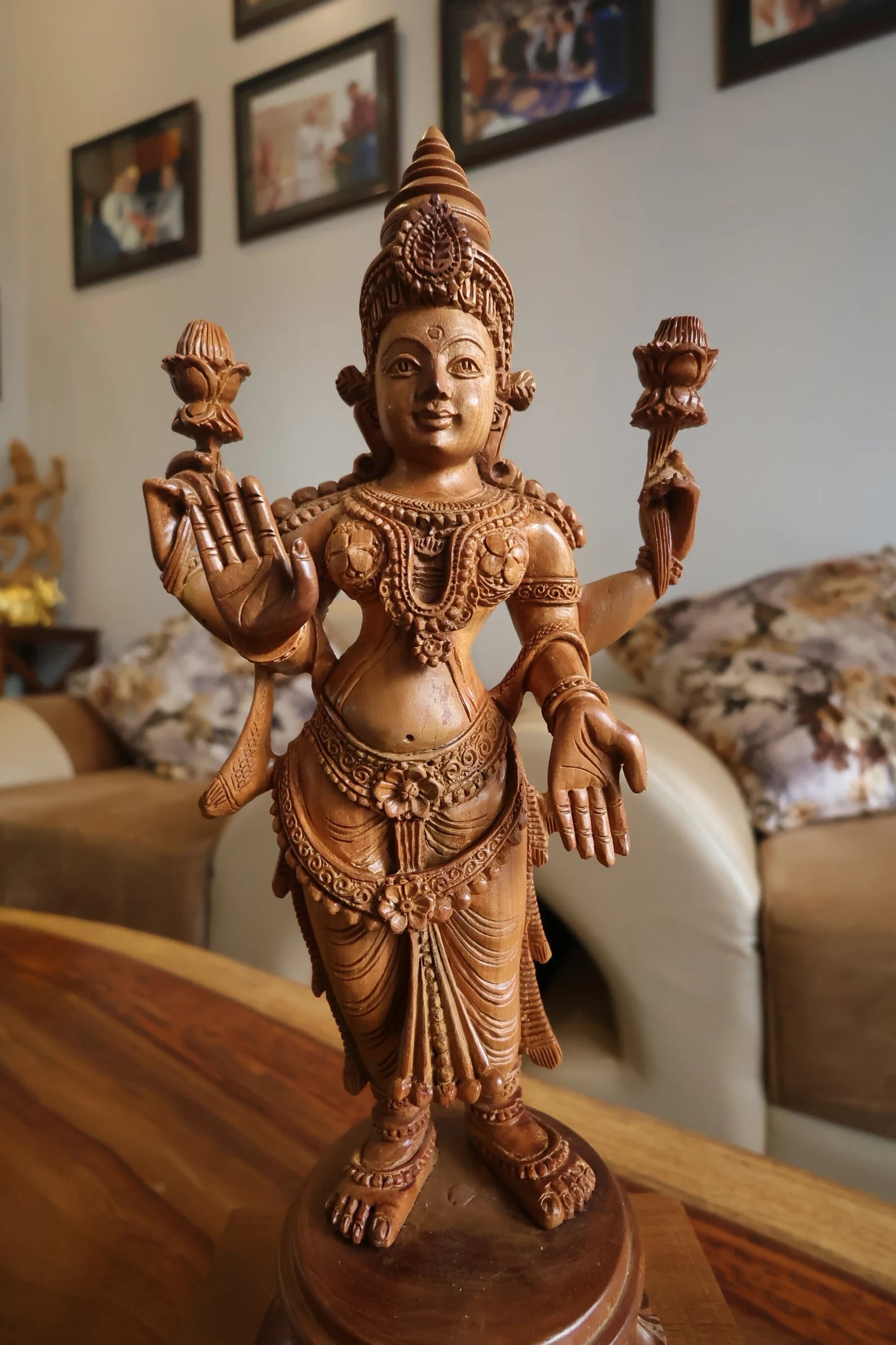 Sandalwood Carved Rare Goddess Laxmi Statue