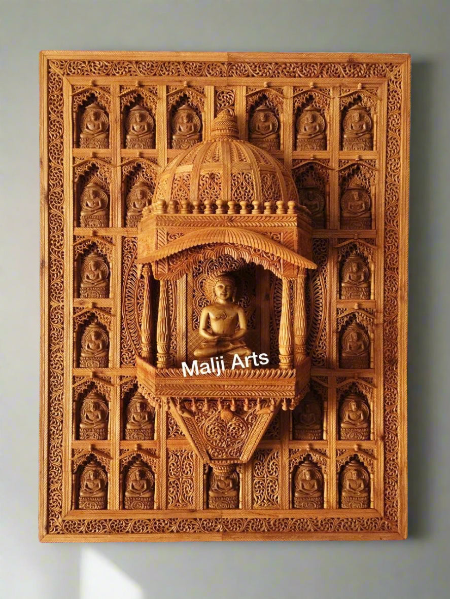 Sandalwood Carved Wall Hanging Jharokha of 24th Tirthankara of Jainism