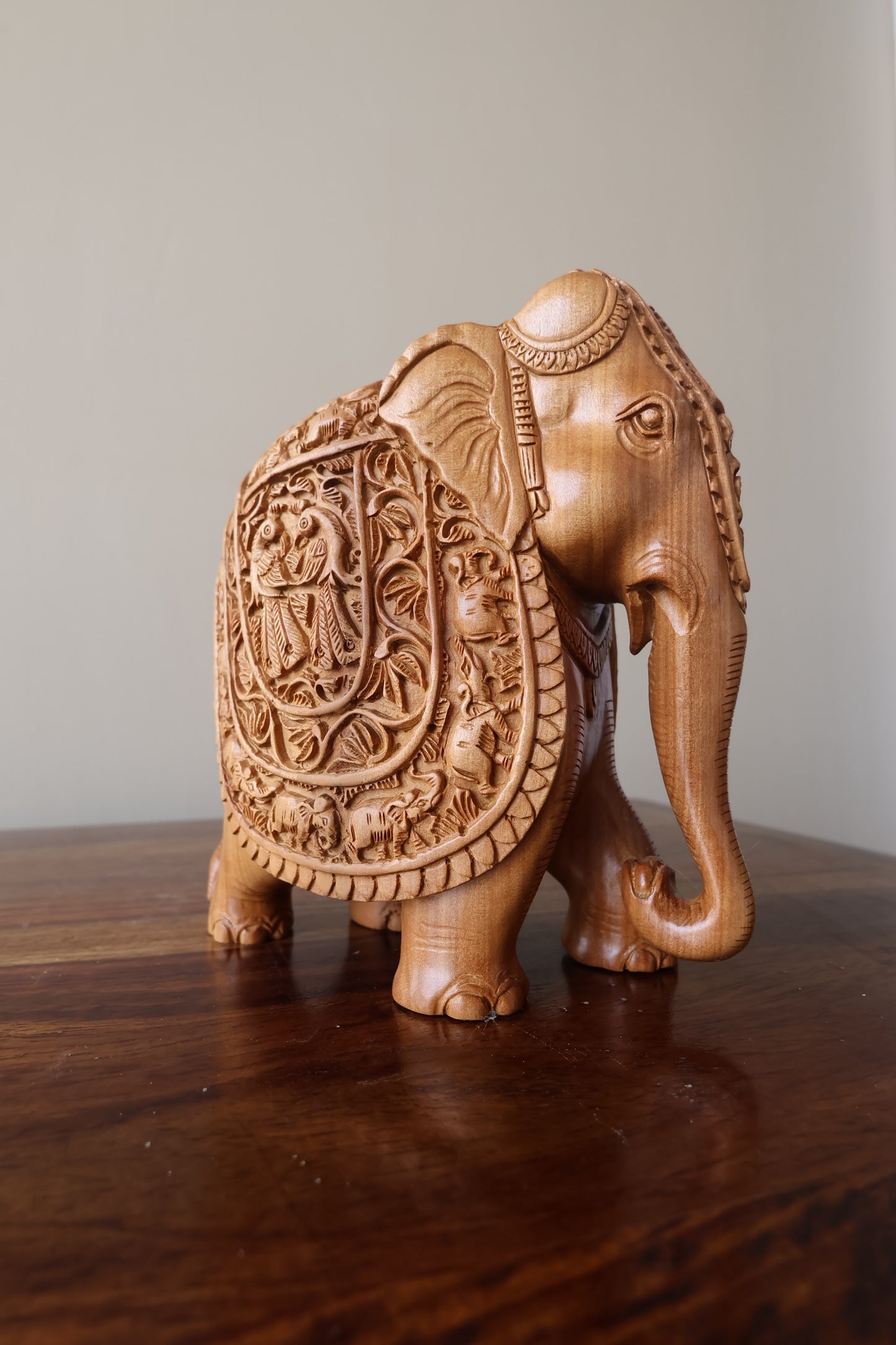 We offer a wide range of Hand carved sandalwood elephants created using traditional methods. We have a collection of decorative sandalwood elephant statue mostly carved from sandalwood carved, plain carving, antique finish. Our hand carved elephants are crafted from a single piece of sandal wood block. Wood carving in India is a traditional art which is passed on by master craftsmen.