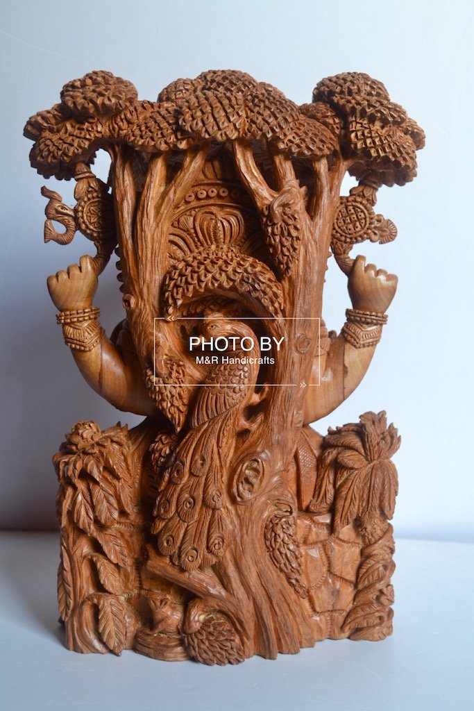 This Statue is made by Mysore Sandalwood. Wooden Base Also provides it a royal Look. Beautiful Collective Art-Piece. Lord Ganesha very first before worshiping any God or Goddess. According to the Hindu mythology, it considered that the puja is incomplete without the worship of Lord Ganesha. This Statue is made by Mysore Sandalwood. Wooden Base Also provides it a royal Look. Beautiful Collective Art-Piece.