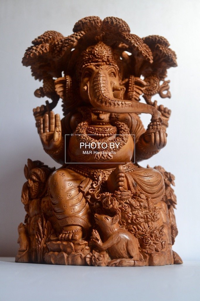 Sandalwood Hand Carved GANESH Under Tree Statue