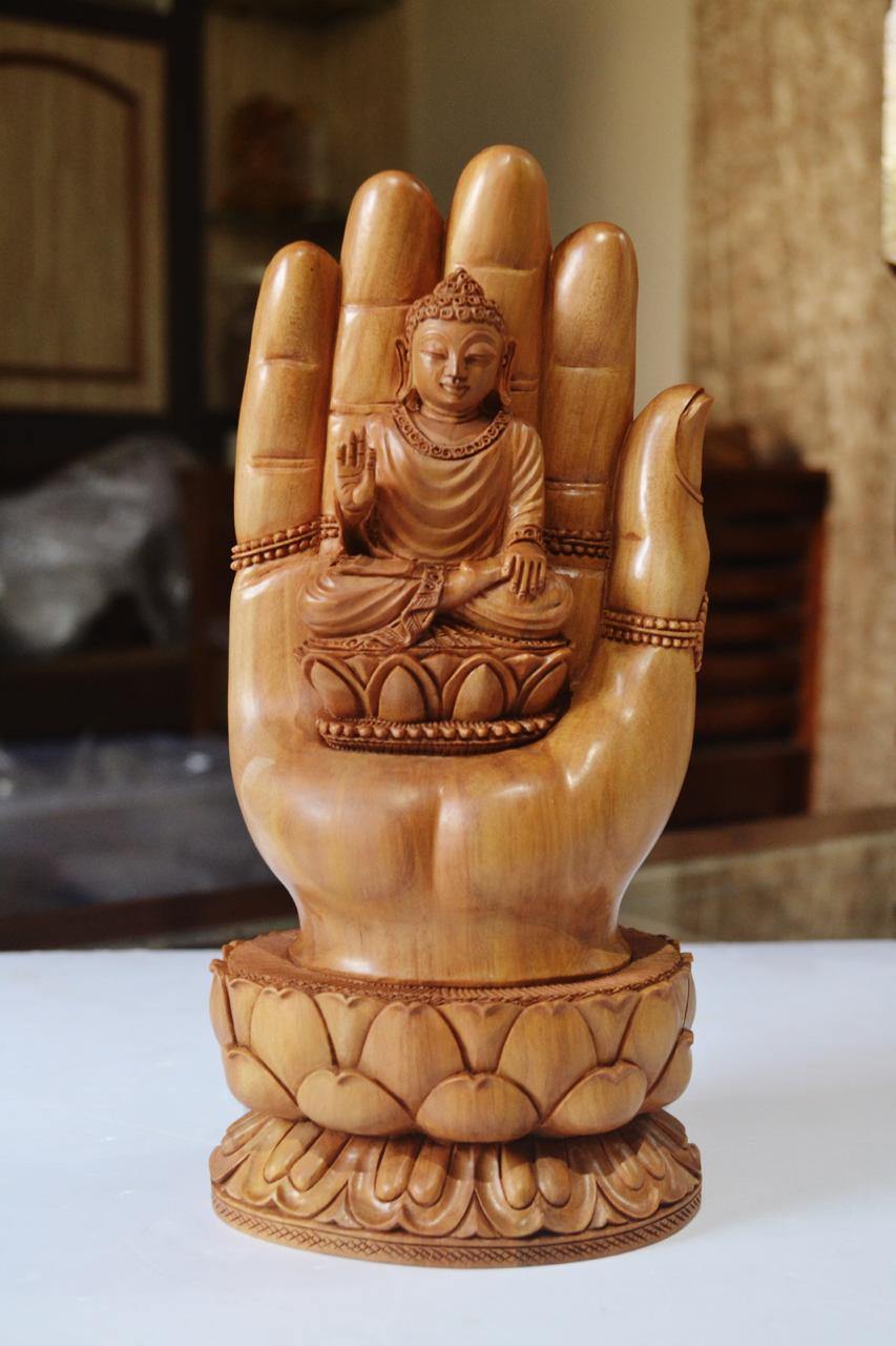 Sandalwood handmade Buddha statue in palm collectible Home Decor Gift