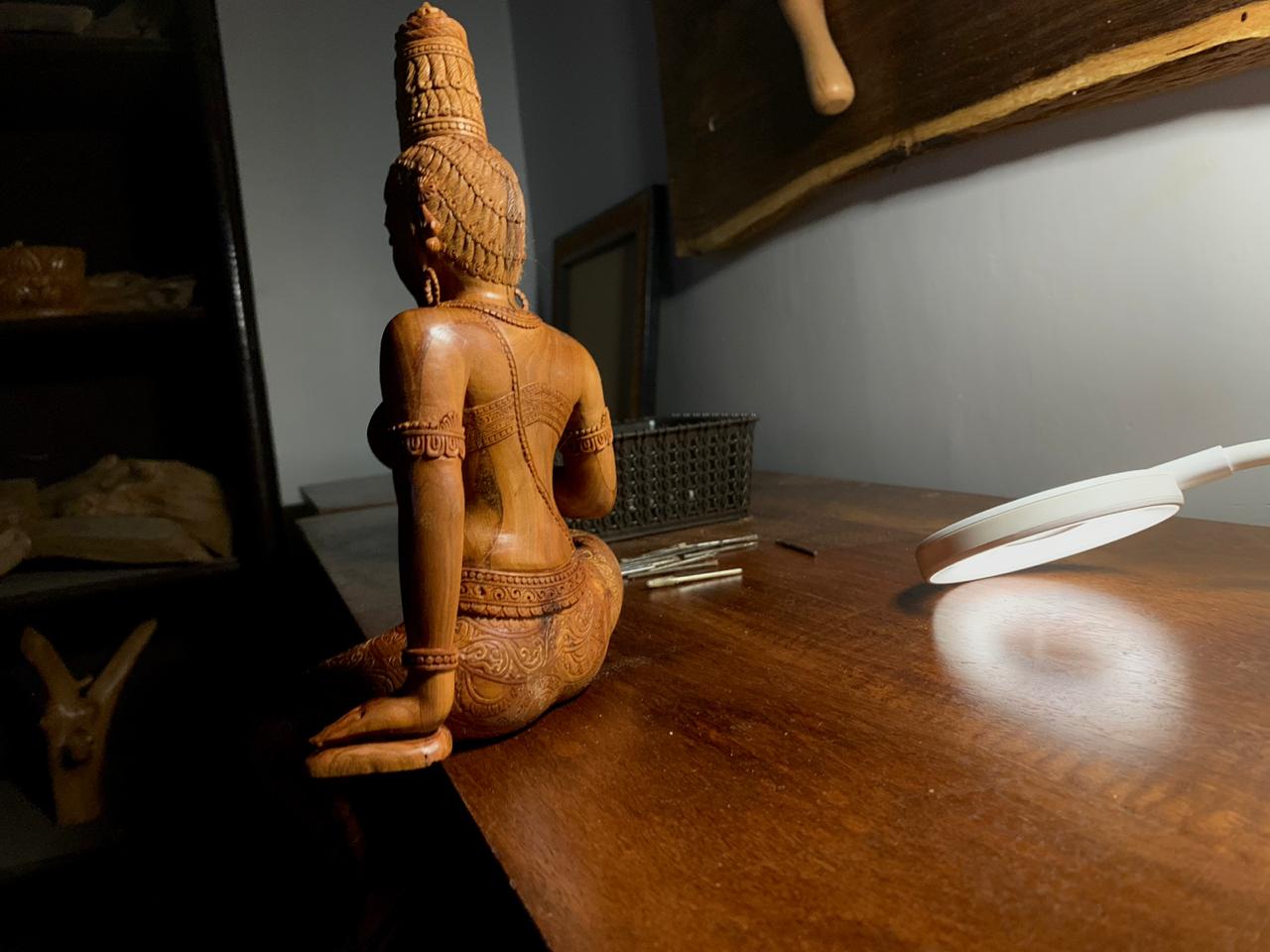 Bhogashakti is the form that Goddess Parvati takes before going into the inner sanctum of a temple with her husband "Lord Shiva". Bhoga means pleasure and shakti means energy, This intricate sculpture with elaborate details is made using Sandalwood.