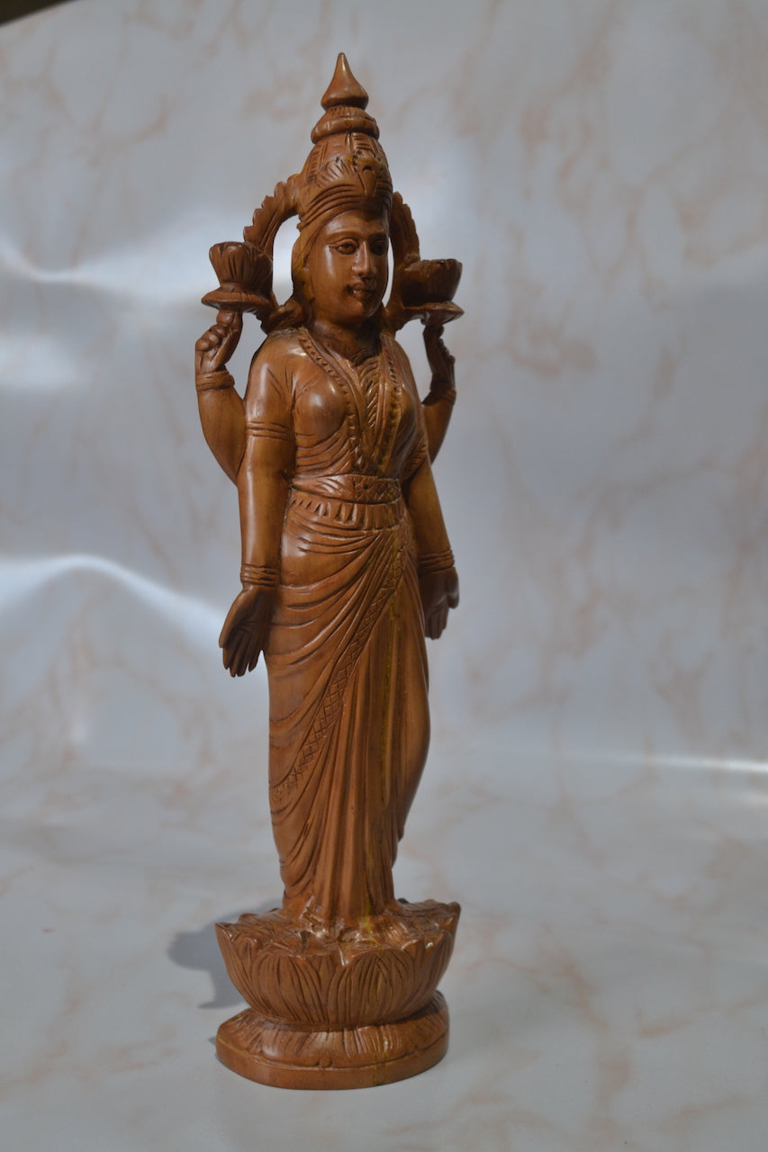 Sandalwood Carved Laxmi Statue