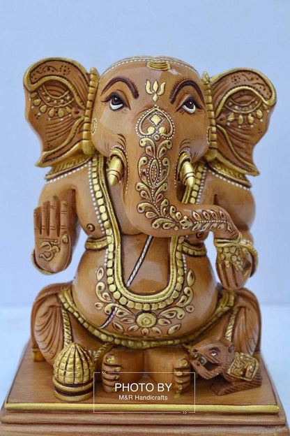 Wooden Hand Painted Baby Ganesha Statue
